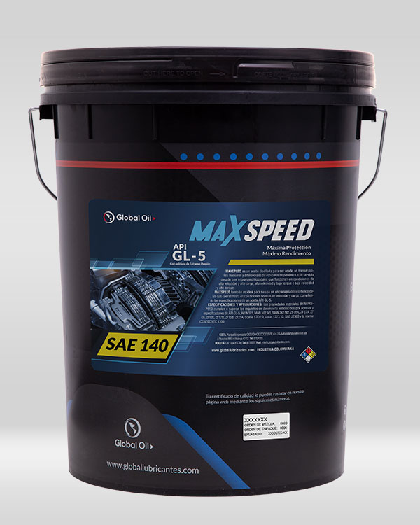 MAXSPEED es un aceite diseñado para ser usado en transmisiones manuales y diferenciales de vehículos de pasajeros o de servicio pesado con engranajes hipoidales que funcionan en condiciones de alta velocidad y alta cara; alta velocidad y bajo torque o baja velocidad y alto torque. MAXSPEED también es ideal para su uso en engranajes cónico-helicoidales que operan hasta en condiciones severas de velocidad y carga, cumpliendo las especificaciones de un aceite API GL-5.
